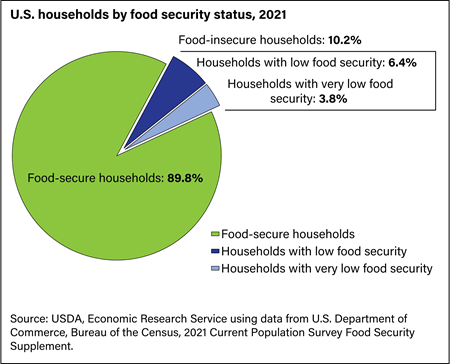 - 10.2 percent (13.5 million) of U.S. households were food insecure at some time during 2021.