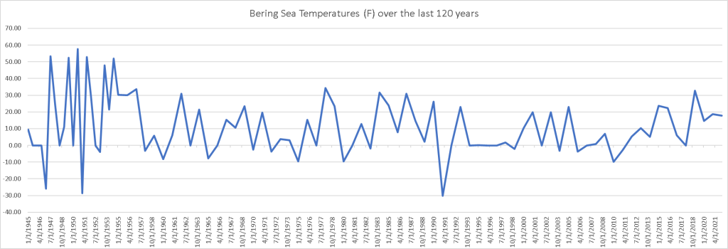 “Environmental conditions are changing rapidly,” ADF&G researcher Ben Daly said “We’ve seen warm conditions in the Bering Sea the last couple of years, and we’re seeing a response in a cold-adapted species, so it’s pretty obvious this is connected. It is a canary in a coal mine for other species that need cold water.”